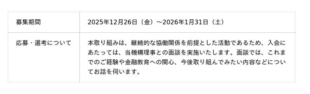 これまで中学校・高等学校の教員を中心に活動してまいりましたが、2026年度に向けては、小学校および大学の教員も対象に加え、より幅広い教育段階から金融教育を「現場」起点で広げていきます。