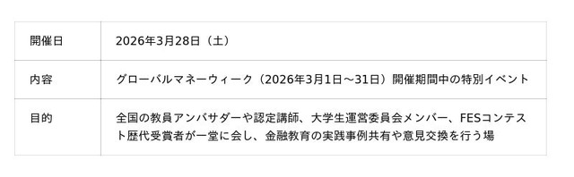 以下のイベントは、教員アンバサダーの交流および金融教育の実践共有を目的として開催予定です。