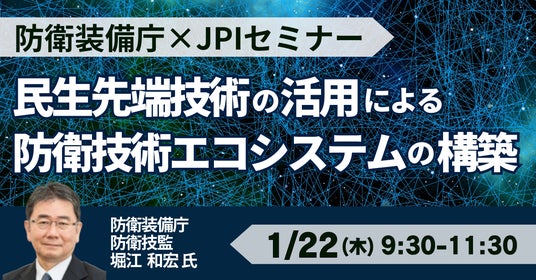 JPI(日本計画研究所)は、防衛装備庁 防衛技監 堀江 和宏 氏を招聘し、民生先端技術の活用による防衛技術エコシステムの構築と研究開発に関する取り組みについて詳説いただくセミナーを開催します。