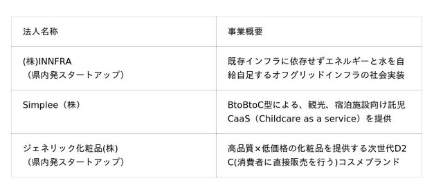 本事業は、資金面の後押しに加え、県の多様な支援策と連動し、スタートアップの定着・成長を促進することを目的としています。