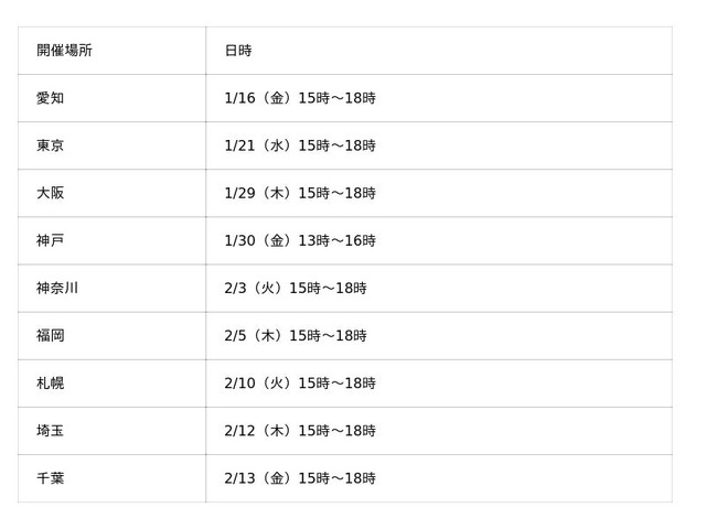 ご都合のよい場所・日程をご選択の上お申し込み下さい。
