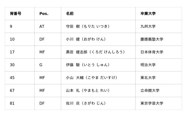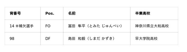 ※早稲田大学所属のU20男子日本代表選手