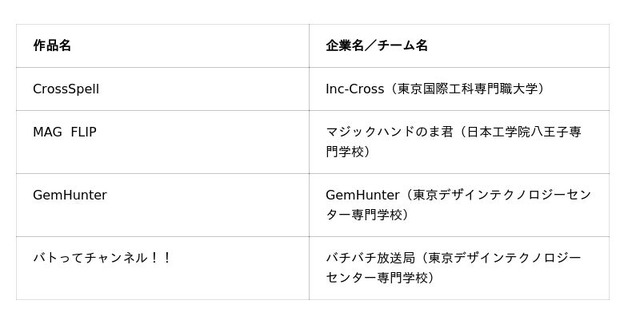 チーム名: GemHunter、学校名:東京デザインテクノロジーセンター専門学校