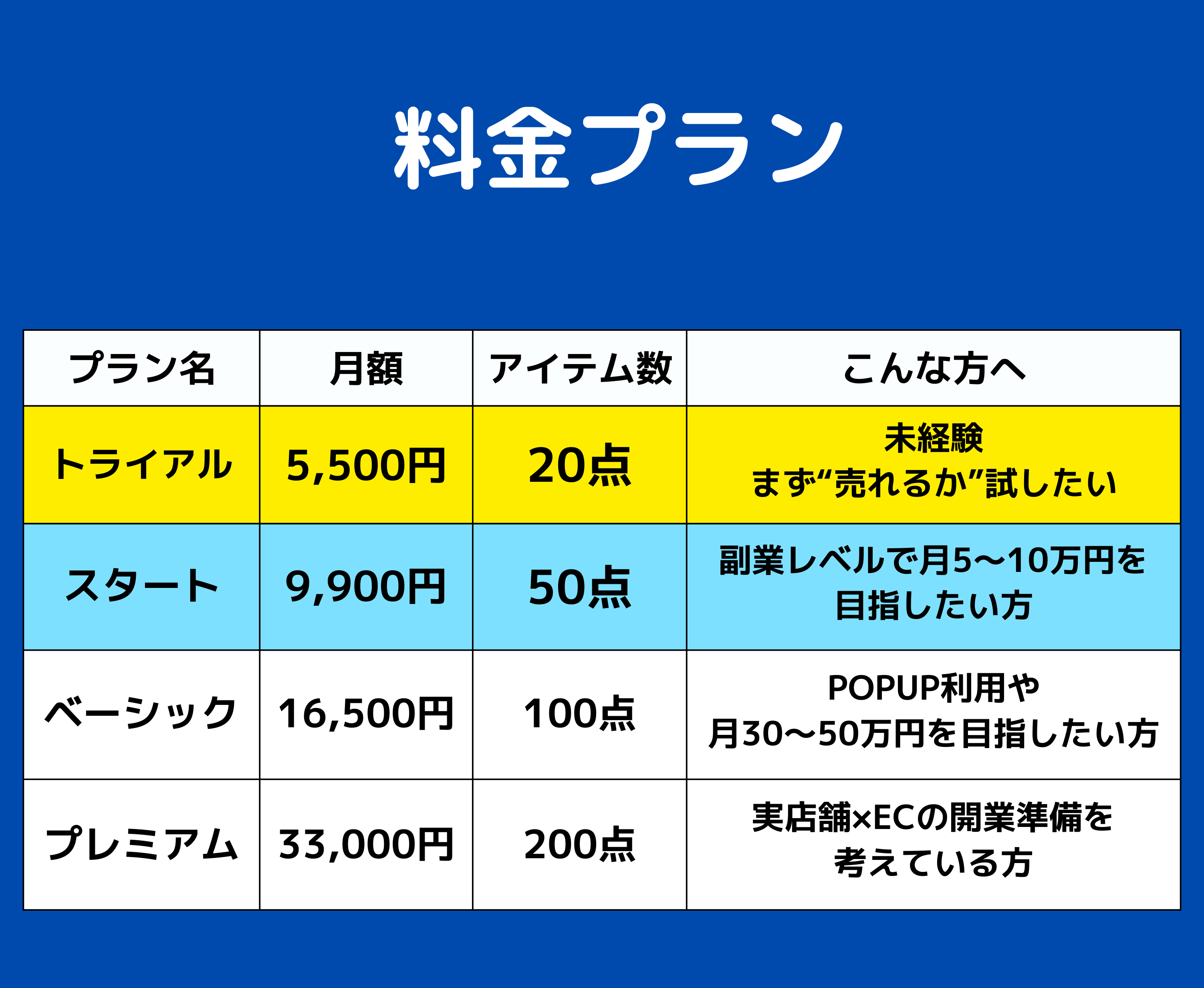月額5,500円のトライアルプラン:20点から実験的にスタートできる