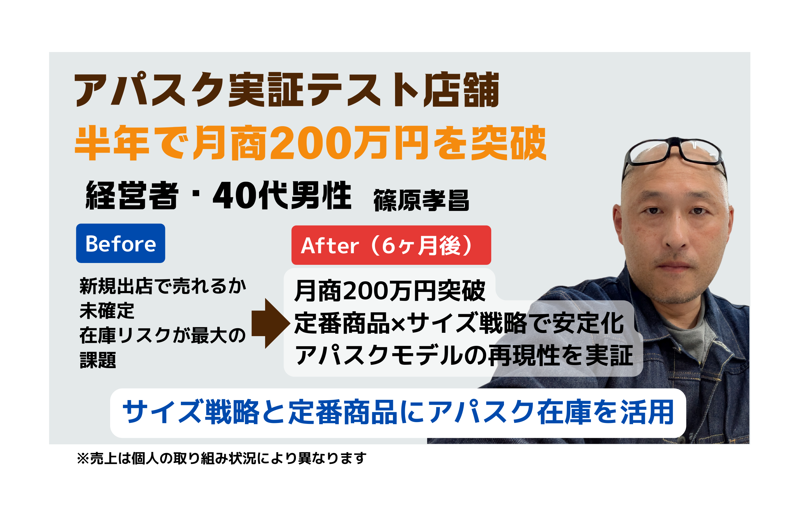 東京都杉並区の株式会社シノ商店(代表:篠原孝昌)は、在庫を持たずにアパレル販売を始められる新サービス「アパスク・トライアル」を2026年1月より提供開始します。もともとアパスクは、実店舗向けのアパレル販売支援サービスとして開発されましたが、サービス提供を進める中で、「個人でも気軽に始めたい」「初期費用をもっと抑えたい」といった声が多く寄せられました。特に、SNSを活用して発信を行うインフルエンサーやクリエイター層からのニーズが高く、現在では約1,000人規模のインフルエンサーが関心を寄せています。こうした利用者の声を受け、シノ商店は個人でも利用しやすい格安プランとして「アパスク・トライアル」を新たに開発しました。在庫を持たずにアパレル販売を始められる仕組みはそのままに、初期負担を大幅に軽減することで、副業やスモールスタートを目指す若者や個人事業主にも利用しやすいサービス設計となっています。