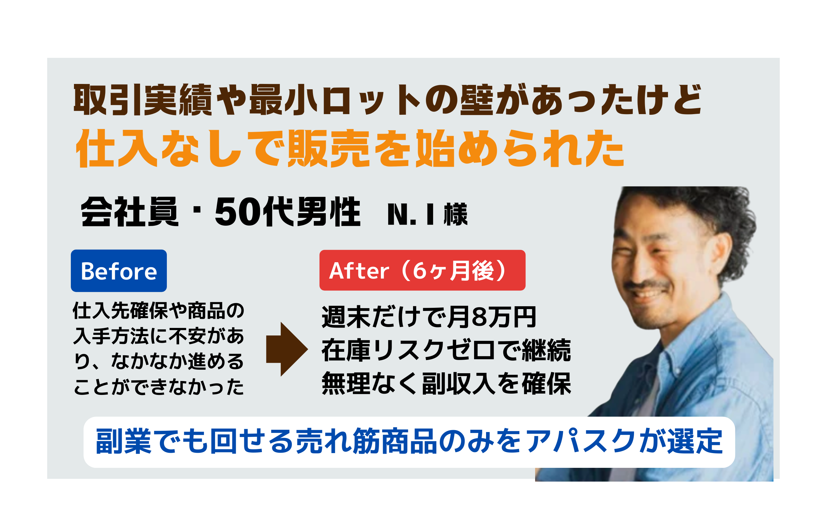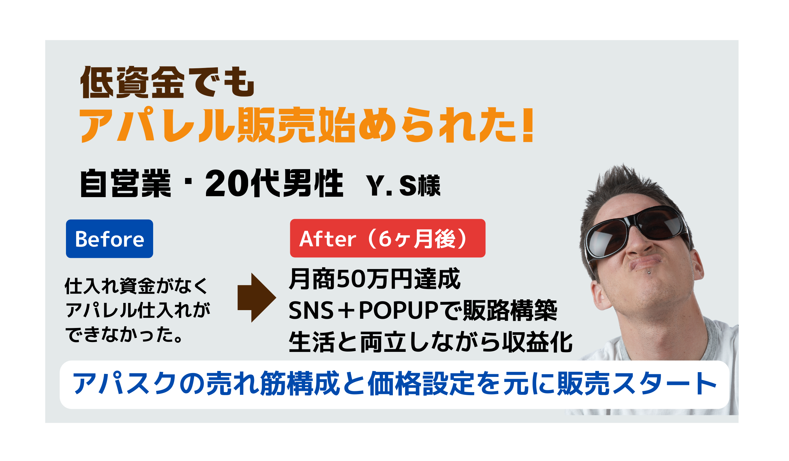 「低リスクでアパレル販売を始めたい個人・副業者・若手起業家」に特化して設計されており、在庫を持たずにアパレル事業を開始できます。