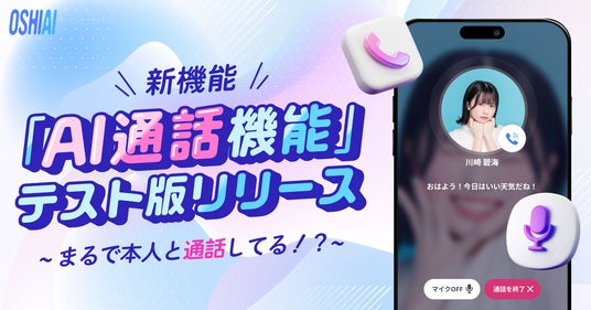 アイドルやVTuber、ライバーと言ったクリエイターの公認AI(アイ)とチャット・音声によるコミュニケーションを楽しめるAIコミュニケーションアプリ「OSHIAI」にて、アイとの通話体験ができる新機能 「AI通話機能」のテスト版 をリリースしたことをお知らせいたします。