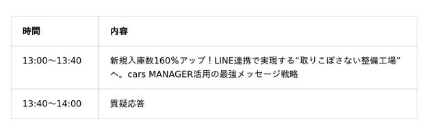 「新規入庫が伸びない」「電話やDMでは反応が得られない」──そんな課題を抱える整備工場は少なくありません。本セミナーでは、LINEとcars MANAGERを組み合わせ、新規入庫数を160%アップさせた成功事例を公開します。