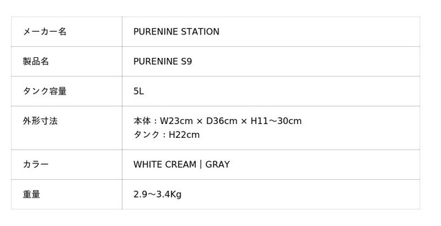 「PURENINE S9 」の主な特徴
