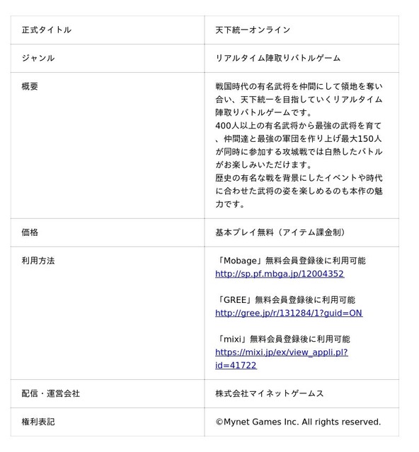 ■天下統一オンライン概要