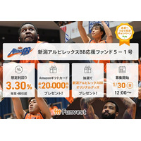 貸付型クラウドファンディング「Funvest」1/30より新ファンド「新潟アルビレックスBB応援ファンド5-1号」の募集開始
