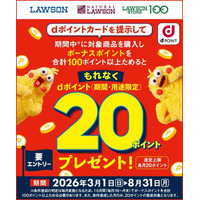 ローソンにおいて「ボーナスポイント対象商品購入でdポイントプレゼントキャンペーン」を開催