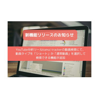 【新機能】国内最大級のYouTubeデータ分析ツール「kamui tracker」、動画タイプの絞り込み検索に対応