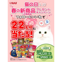 公式アカウントのフォロー&「いいね」で春の新商品&定番商品が当たる! いなばペットフード株式会社…