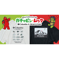 ガチャピン・ムックがColumbia×FREAK'S STOREとのトリプルコラボレーションTシャツとして登場!ルアー柄に潜む姿や、アウトドアを楽しむ、愛らしいデザインが魅力のアイテムです!
