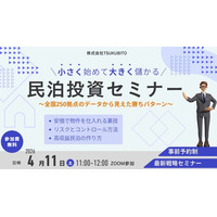 【参加無料】全国250拠点のデータから導く「勝てる民泊投資」セミナーを開催|株式会社TSUKUBITO/2026年4月11日(土)11:00~/事前予約制/オンライン実施/参加費無料
