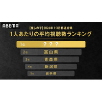 2026年1~3月の「ABEMA」における1人あたりの『【推しの子】』平均視聴数が最も多い都道府県を発表富山県、青森県を抑えて第1位に輝いた県は?