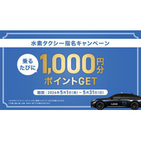 タクシーアプリ「S.RIDE(R)」、水素タクシー指名配車で乗るたび1,000円分のポイント還元キャンペーンを開始