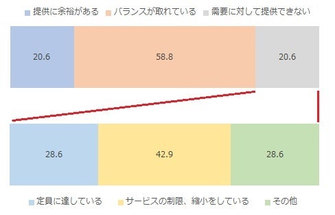 また、同アンケートにおいて「需要に対してサービスを提供できていない」事業所が約20%あり、そのうち約43%の事業所が人手不足などを理由にサービスの制限、縮小をしていると回答。市内ではすでに人手不足を理由に介護事業所の縮小、統合、休止や廃止の動きが表れ始めています。