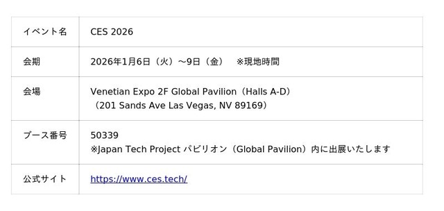 当社は岡山県に本社を置く創業63年の医療用品メーカーです。2024年、2025年のCES出展時には「早く発売してほしい」という声が世界中から寄せられました。今回の出展は、その期待に応えるための「公式発表」の場となります。■前回(CES2025)の様子