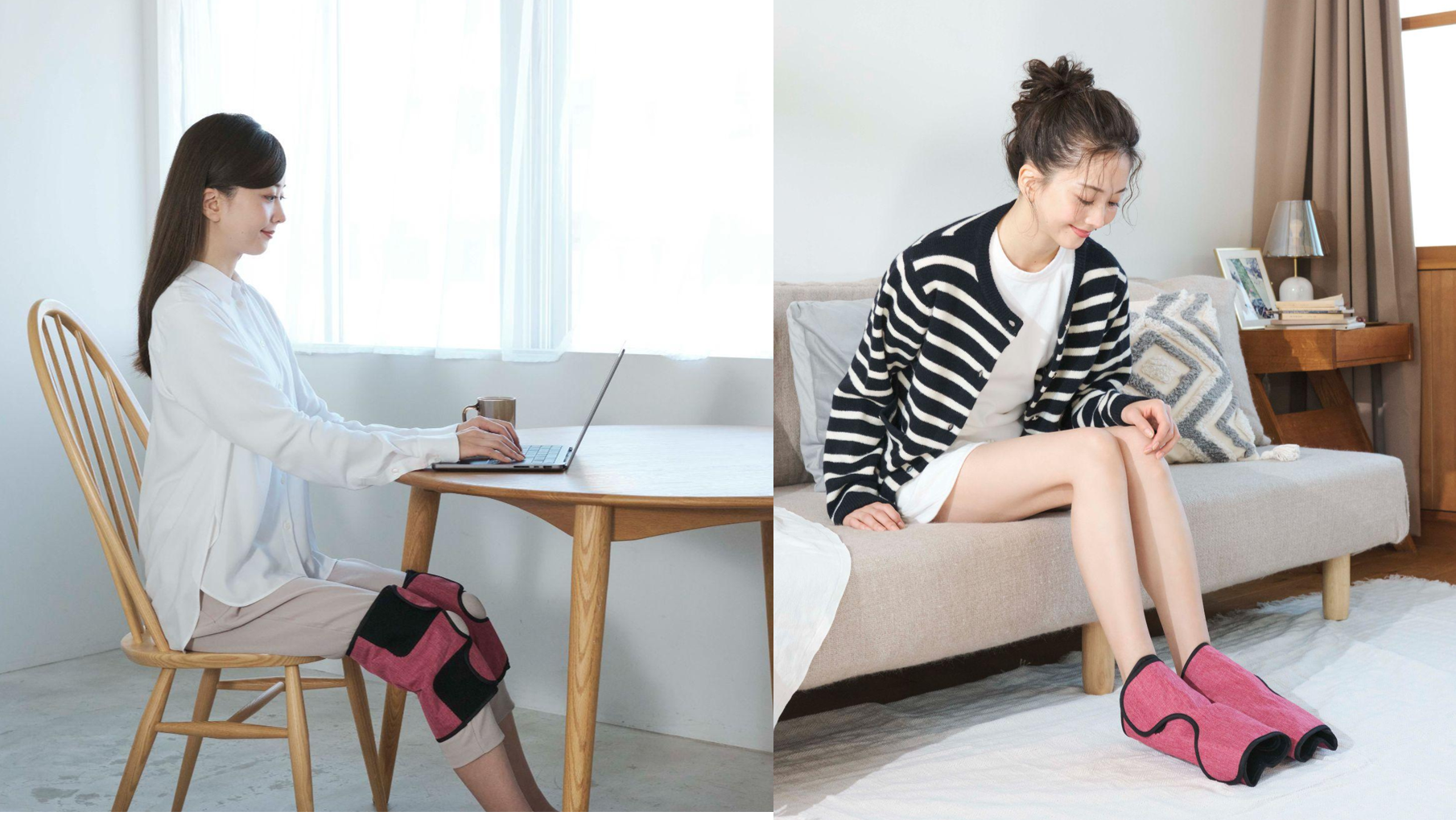 そこで誕生したのが、誰でも簡単に “座ったまま” “脚全体” を心地よく包み込むリラックスフットストレッチギア「エアフット」。千葉真子さんのアスリートとしての知見をもとに開発された「温熱+エアー圧」の機能で、「温め」「筋肉を伸ばす」「関節まわりを整える」の3つのステップから、しなやかな脚づくりを叶える新習慣を提案します。