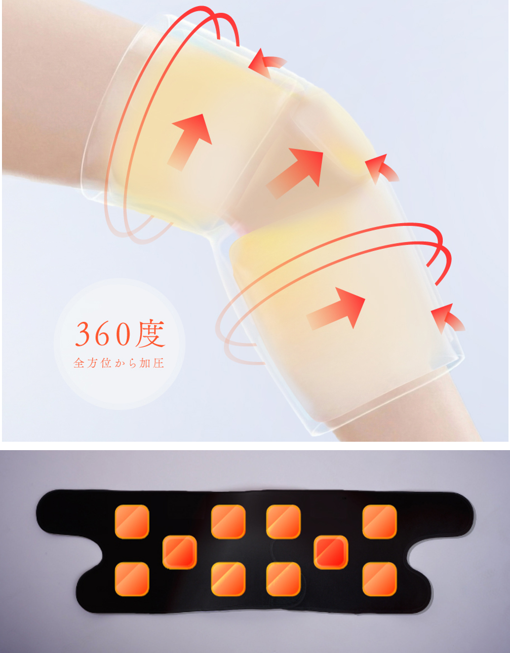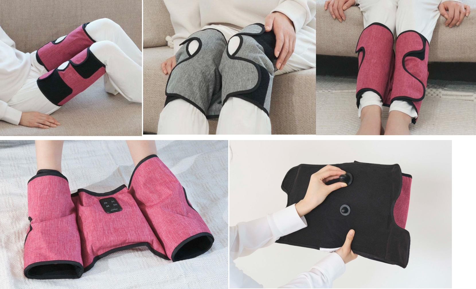 巻く位置を変えるだけで、太もも/膝まわり/ふくらはぎ/足裏を1台でケアできます。