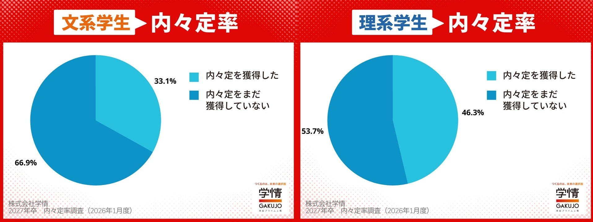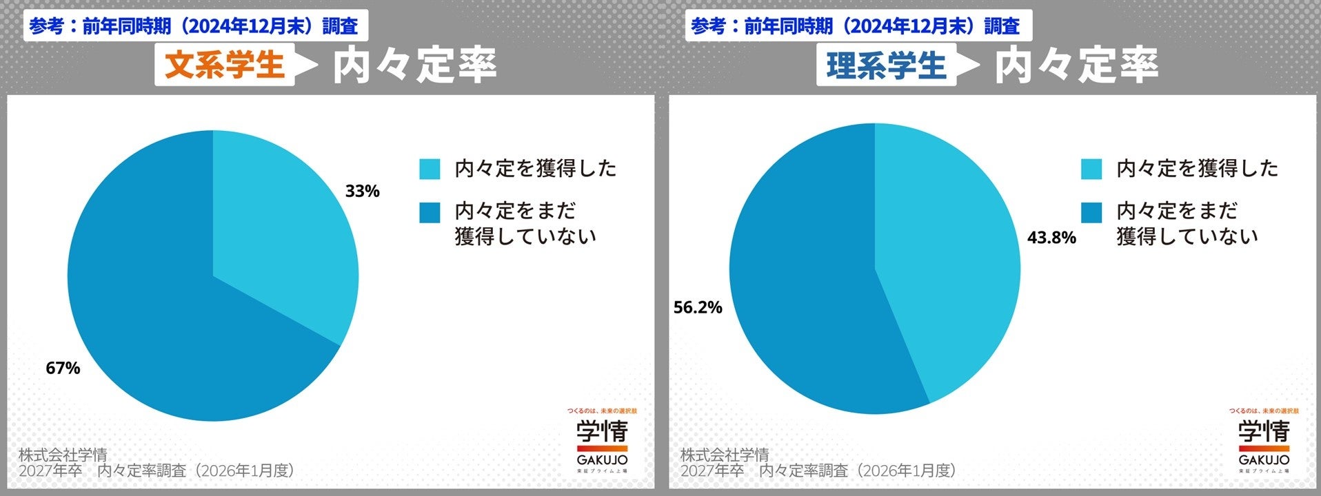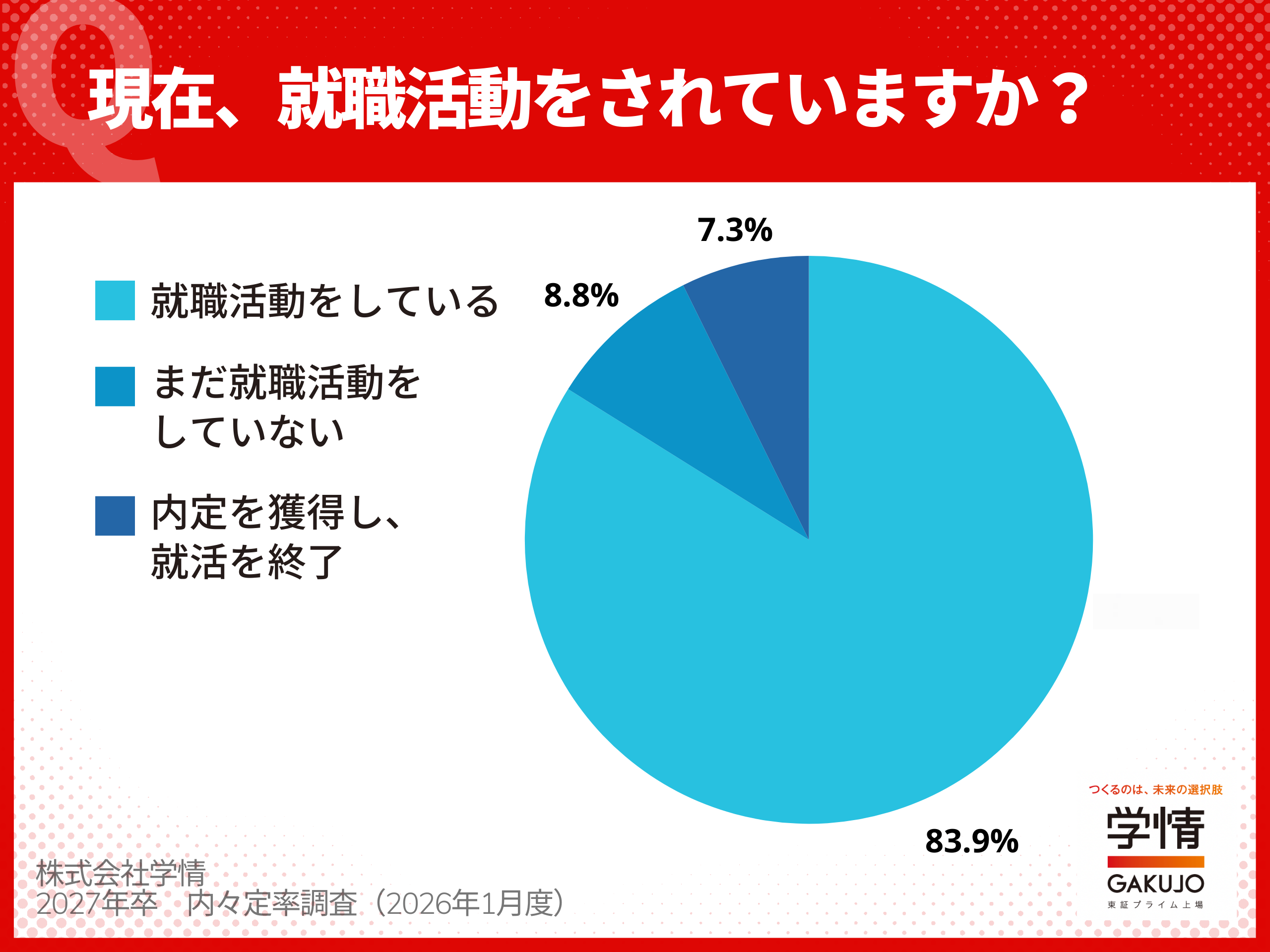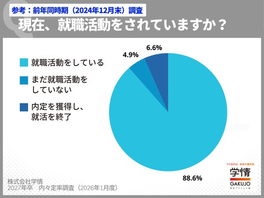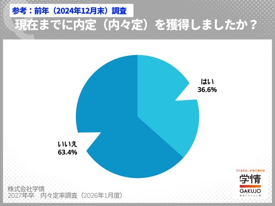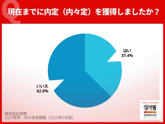株式会社学情(本社:東京都中央区)は、2027年3月卒業(修了)予定の大学生・大学院生を対象に、最新の「内々定の獲得状況」についてインターネットアンケートを実施しました。