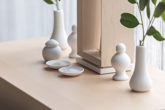モダンな神棚にも、伝統的な神棚にも、自然に溶け込むたたずまい。マットな素焼き調の表面が、空間にやさしい静けさを運びます。