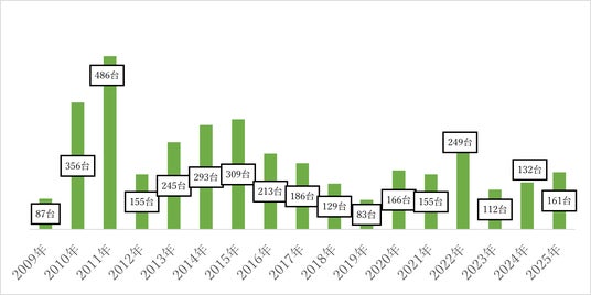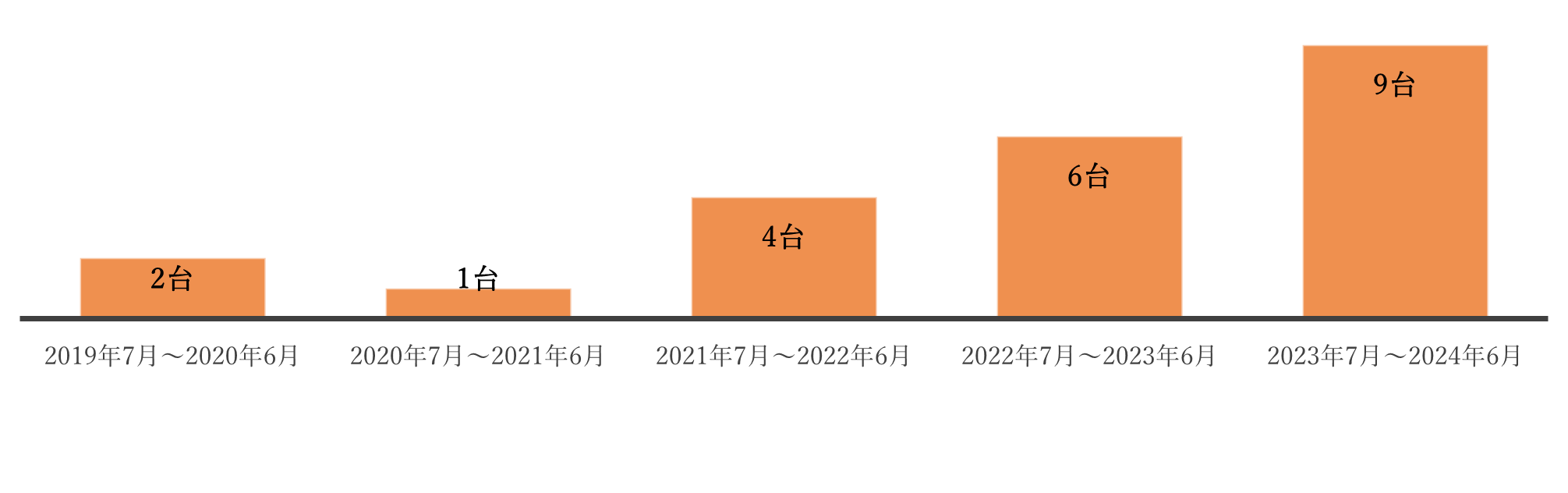 2011年に緑ナンバー、2022年に白ナンバー、ともに事業者へのアルコール検知器使用義務化の影響を受け台数を伸ばした年がありましたが、ここ3年は一定のニーズはありながらも、200台以下とやや低調な実績となっています。本来、「飲酒運転検挙者」向けの機器であるがゆえ、事業者向け市場においては、多彩なアルコール検知器の中でその存在が埋もれている格好と言えます。