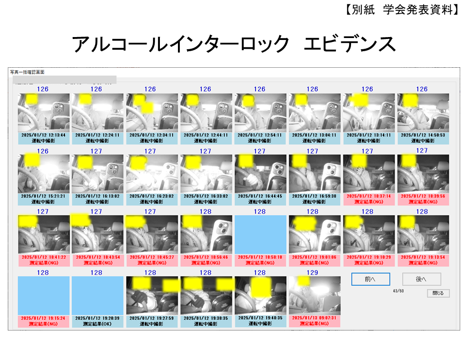 2025年9月、アルコール関連問題学会で、個人がアルコール・インターロック装着した際の飲酒行動の調査データを公表しました。アルコール・インターロックはデジタルデータを保存していますので、飲酒運転行動のエビデンスとして有用であることを、調査データをもって訴えました。(別紙学会資料)
