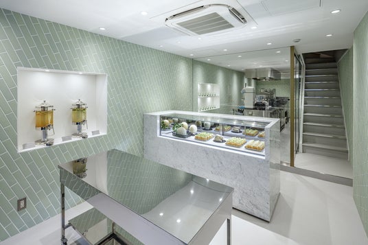 国内から集めた旬のメロンを使用したオリジナルメニューをカフェとテイクアウトで提供。特注のメロン色のタイルがシンボルのショップは、「味わう、香る、見る、聴く、触る」五感のすべてでメロンを体験、メロンを気軽に楽しみながら、深く知ることができる空間となっています。