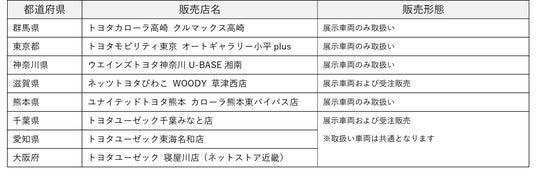 以下のCORDE by 商品取扱い販売店のみでの販売となります。中古車をベース車としているため、販売店ごとに車両仕様(年式/走行距離など)が異なっており、さらに発売時点での展示車両の台数も異なります。取扱店舗ごとの取扱台数、車両仕様、販売方法など詳細情報は2月初旬より順次公開いたしますので、公式サイトやInstagramにてご確認ください。