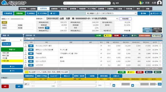 建築業向け管理システム「アイピア」見積情報画面