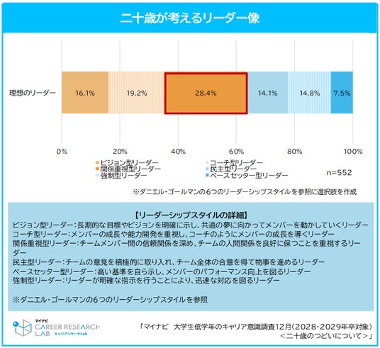 ◆「二十歳のつどい」を迎える学生が考える「理想のリーダー」は、メンバー間の信頼関係を深め、チームの人間関係を重視する「関係重視型リーダー」