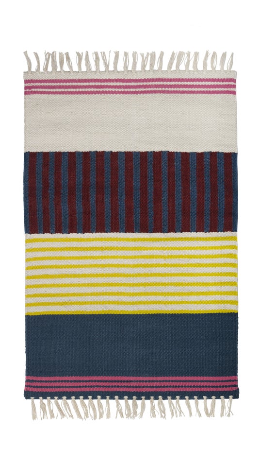 この手織りラグは、無染色のジュートとウールを使用し、温かな色合いが特徴です。玄関やベッドサイドなど、さまざまな空間にフィットする万能サイズです。どのタイプの床にも馴染み、床暖房対応で快適に使用できます。フラットな表面で掃除もしやすく、お手入れが簡単です。