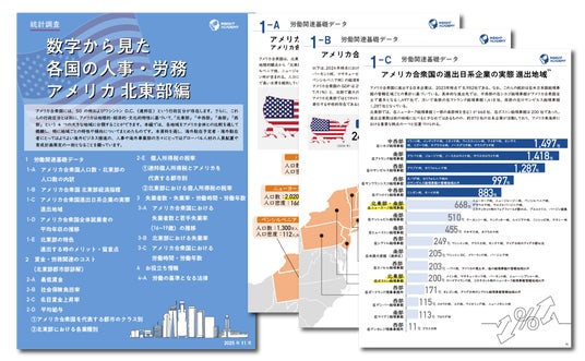 本資料はアメリカをさらに分解し、北東部の平均給与や最低賃金、産業別就業者数、事業進出する際のメリット/留意点など、アメリカ北東部の人事・労務について豊富なデータを集めた、最新資料となっております。