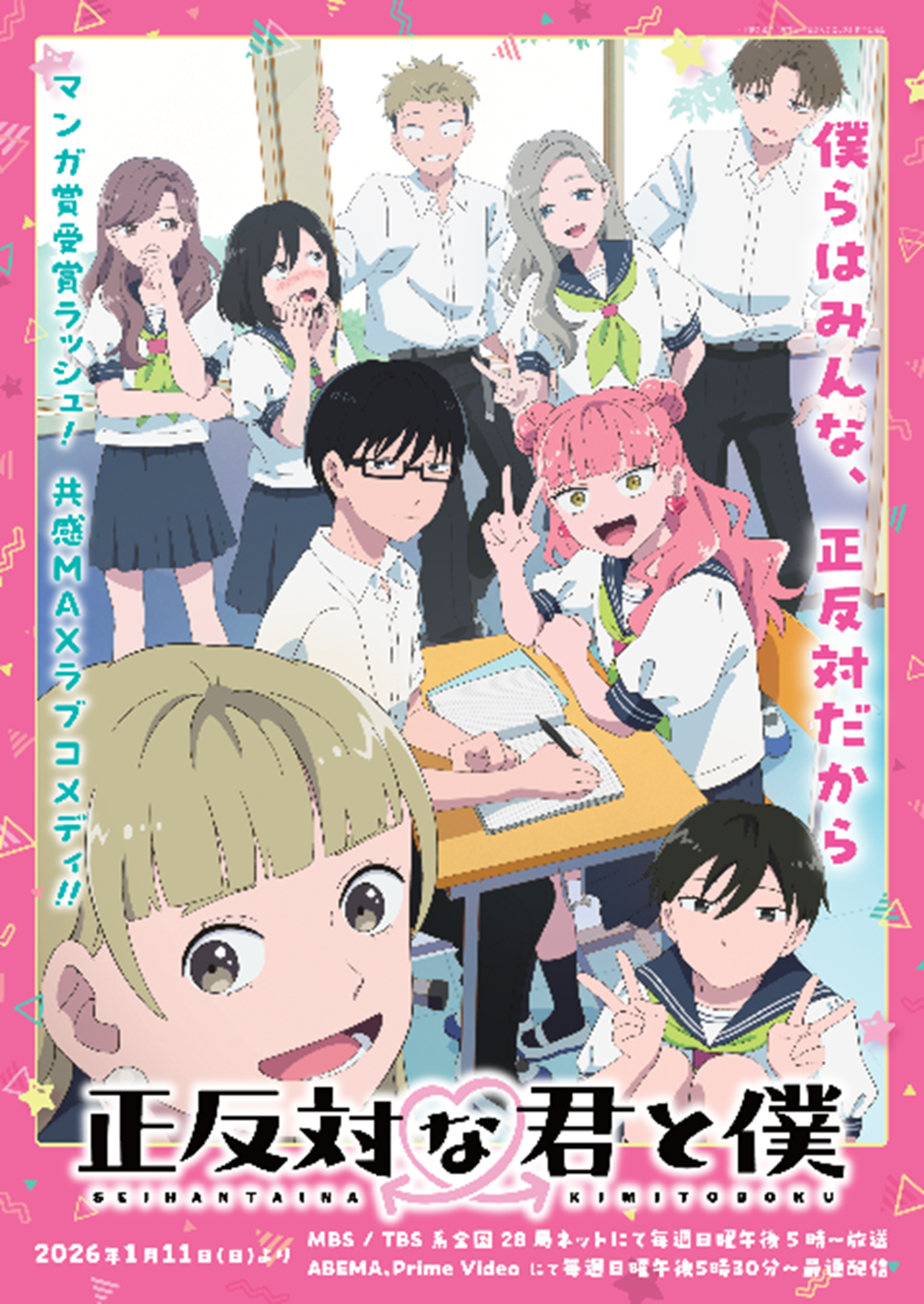 「ジャンプ+」にて連載し数多くの漫画賞を受賞した「正反対な君と僕」がTVアニメ化され、2026年1月11日(日)より、MBS/TBS系全国28局ネットにて放送いたします。この度、本作の放送を記念し、“正反対”な鈴木と谷がくりひろげる青春のときめきが詰まったビジュアルを券面デザインにしたオリジナル24時間券を発売します。