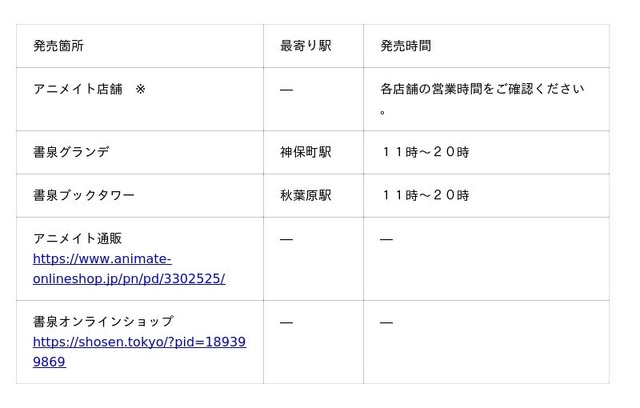 ※東京都、埼玉県、千葉県、神奈川県、群馬県、栃木県のアニメイト店舗で発売。発売店舗の詳細は、アニメイト通販のURLをご参照ください。