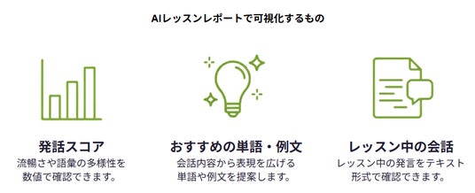 【オンライン英会話レッスン → AI分析 → 復習・予習】という学習サイクルを日本人コーチが一気通貫で管理。最適な学習プランの設計に加え、AIによる成果の可視化、日本人コーチによる学習法の改善アドバイス、レッスンと連動した予習・復習コンテンツにより、英語を話せるようになるための無駄のない最短ルートでの目標達成をサポートします。