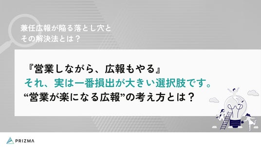 株式会社PRIZMAは、兼任広報が陥る致命的な「落とし穴」を可視化し、少ない工数で最大の成果を出すための戦略をまとめた特別資料『兼任広報が陥る落とし穴とその解決法とは?』を本日公開いたしました。