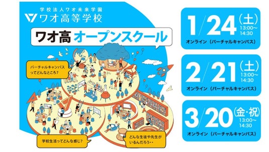 教養探究で哲学・科学・経済を学べる通信制高校・学校法人ワオ未来学園 ワオ高等学校(所在地:岡山県岡山市、校長:平田強)は、2026年1月~3月もオンラインにて「ワオ高オープンスクール」を実施いたします。