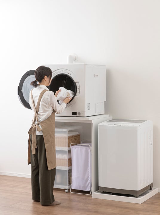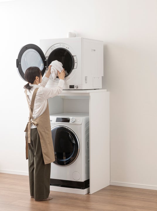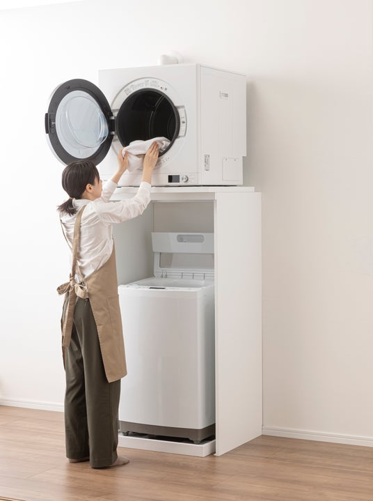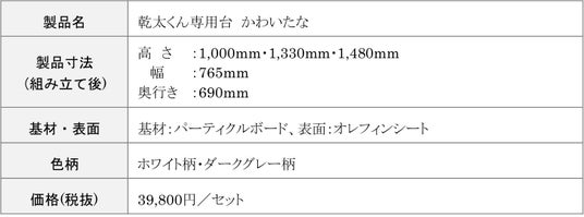 1,000mm、1,330mm、1,480mmの3種類の高さから選択が可能です。1,000mmタイプは、女性や小柄な方でも「乾太くん」に洗濯物を出し入れしやすい高さとなっており、『かわいたな』の下は洗濯かごや衣類などの収納スペースとして活用いただけます。1,330mmタイプは標準サイズの洗濯機、1,480mmタイプは大型の洗濯機を台の下に設置することが可能です。