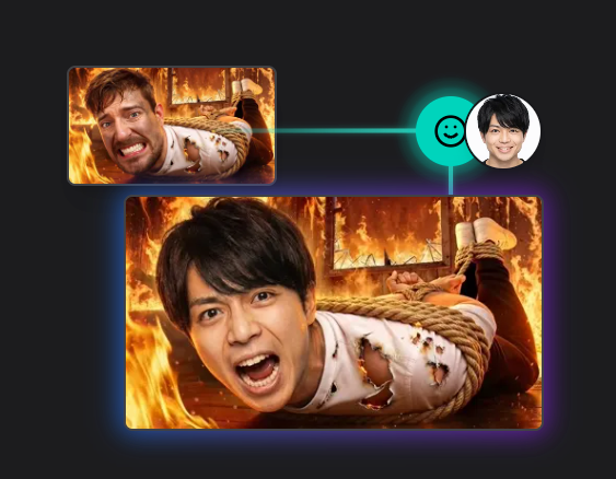 3. 顔写真の入れ替え機能生成されたサムネイルの人物の顔を、指定した顔写真に自然に入れ替えることができます。自身の顔写真を使ったオリジナリティのあるサムネイル作成も容易です。