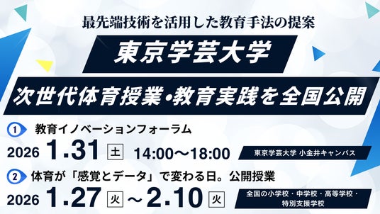 東京学芸大学 鈴木直樹研究室(東京都小金井市)は、文部科学省「最先端技術及び教育データ利活用に関する実証事業」の一環として、ICT・XR・教育データを活用した次世代体育授業および教育実践の成果を広く公開する、2つの関連イベントを開催します。