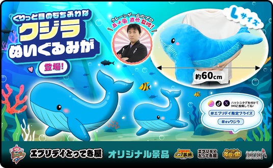 今回登場する新景品は、思わず目を引くビッグサイズが魅力の「クジラぬいぐるみ」です。