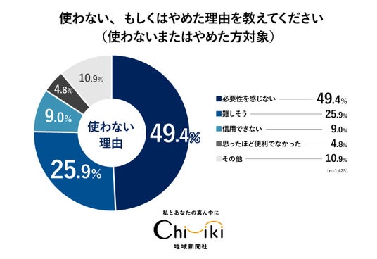 「生成AIを使わない、もしくはやめた理由を教えてください」という質問に対し、「必要性を感じない」という回答が約半数を占め1位でした。2位は「難しそう」という回答で、25.9%と全体の約4分の1を占めます。生成AIに関心は高いものの、実際に試したことがない人が多いことがうかがえます。3位は「信用できない」という回答。生成AIに情報を読み込ませることで、情報漏洩につながる可能性もあるため、使い方について正しく知ることが重要です。