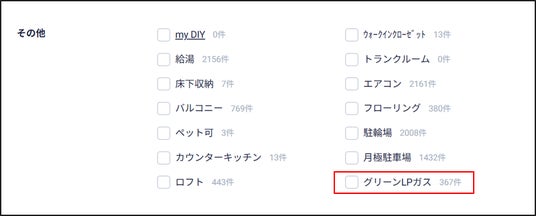 お部屋探しサイトの検索詳細条件に、「グリーンLPガス」を新たに追加しました。これにより、サイト利用者は検索時に「グリーンLPガス」対象物件を選択し、効率的に絞り込むことが可能となります。