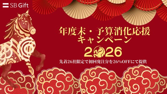 デジタルギフトサービス及びO2Oソリューションを提供するSBギフト株式会社(本社:福岡県福岡市、代表取締役:大和 清隆、以下「SBギフト」)は、年度末に向けた企業の予算消化および販促・福利厚生施策を支援するため、2026年3月末までのご発注を対象とした特別キャンペーンを実施いたします。 2026年を迎えたことにちなみ、期間中に新規でご発注いただいた法人企業様のうち先着26社限定で、初回ご請求額から26%を割り引く特典をご提供します。