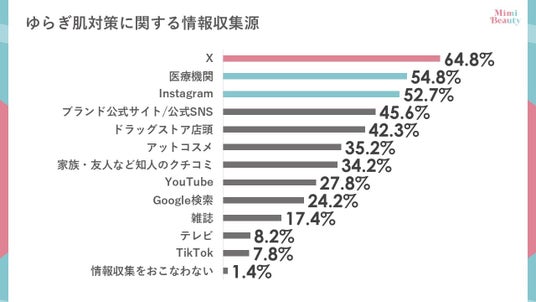 - ゆらぎ肌対策の情報収集源は「X」「医療機関」「Instagram」