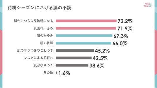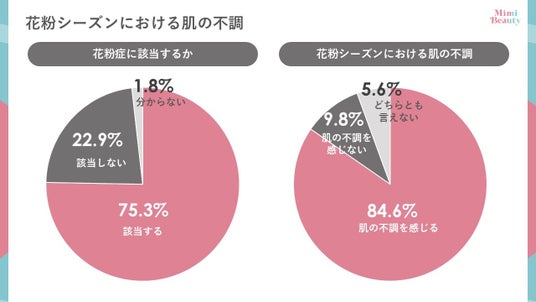 - 75.3%が花粉症を自認し、84.6%が花粉シーズンにおける肌の不調を感じている